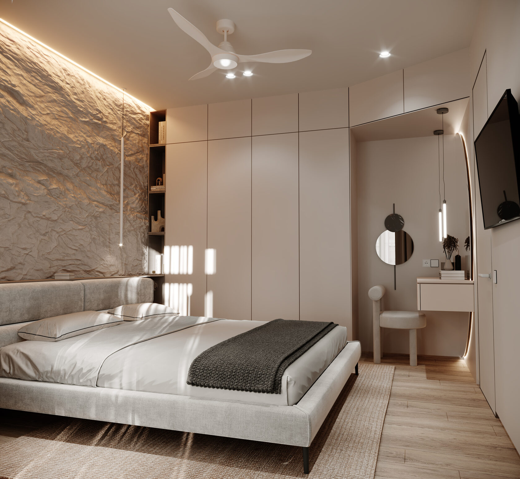 Например, для кухни потребуется яркое и функциональное освещение рабочей поверхности, а в спальне – мягкий, рассеянный свет. В гостиной можно комбинировать разные типы освещения для создания различных сценариев – от яркого света для приема гостей до приглушенного для просмотра фильмов.