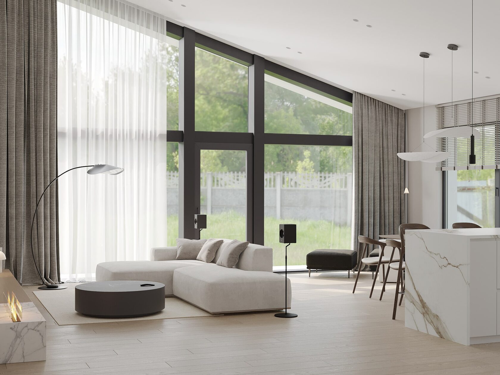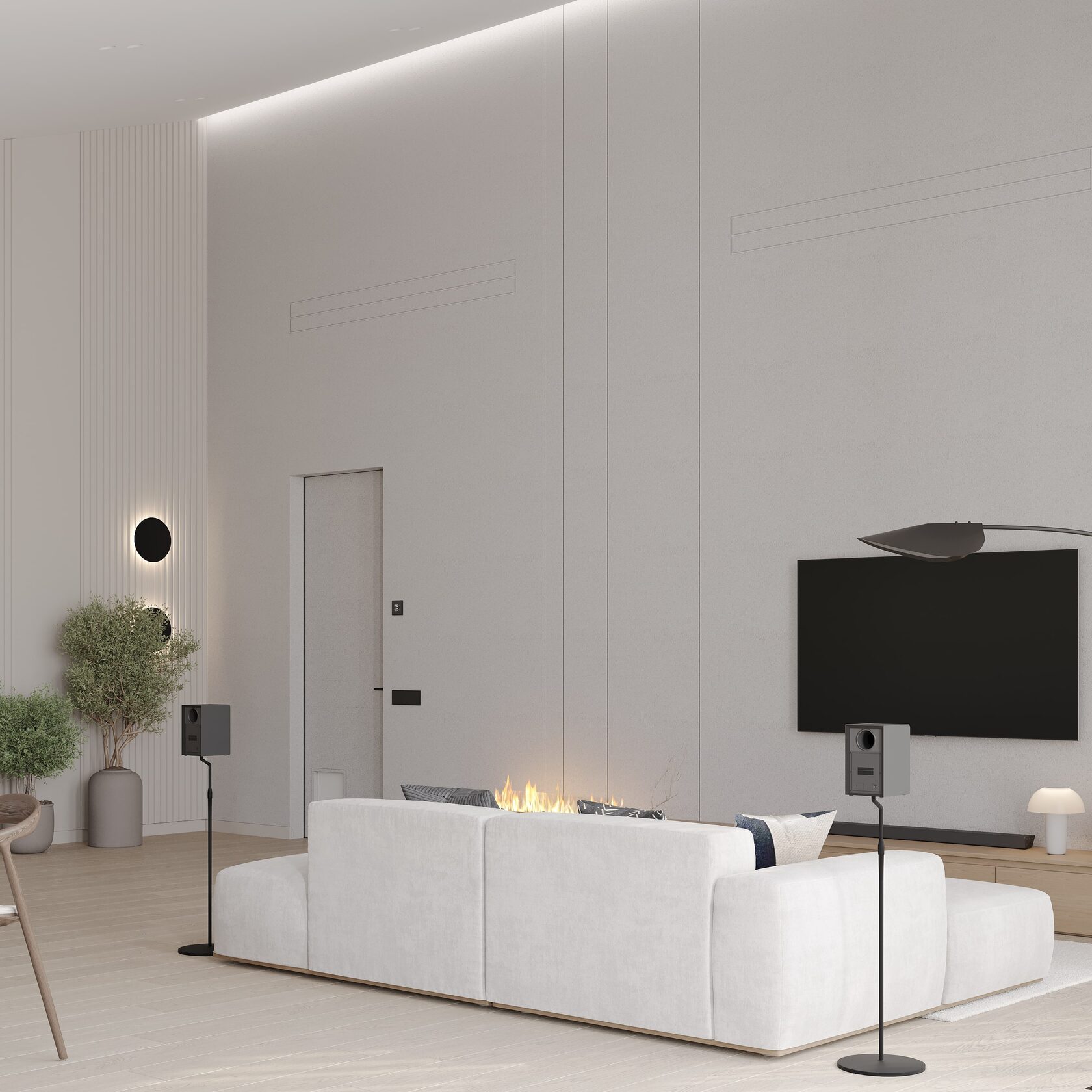 В большой гостиной планировка и зонирование – это ключ к созданию комфортного пространства. Без грамотного подхода комната будет выглядеть пустой и «нежилой».